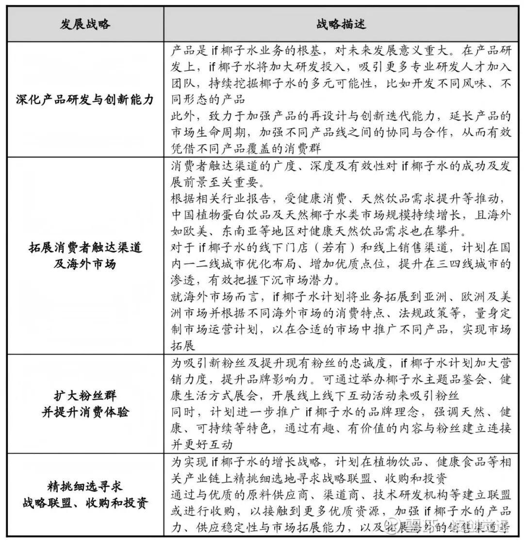 市场表现:在中国内地和香港市场优势显著。2024年,if品牌在中国内地椰子水饮料品类按零售额计算市占率为27.9%,在中国香港市场占有率达58.8%,均位列当地该品类前列,且在两大市场的前五大品牌中均录得最高的按年增长率。在全球层面,按零售额计算,if品牌在2024年位列第二大椰子水饮料品牌,市场占有率为6.6%。