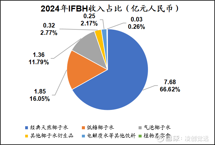 椰子水业务是IFBH的核心收入支柱。2024年,椰子水业务营收达1.51亿美元,折合人民币约10.89亿元,占公司总收入的95.60%。在椰子水品类中,经典天然椰子水凭借其纯正口感与品牌先发优势,占据主导地位,销量持续领先。低糖椰子水顺应健康消费趋势,增长迅速,市场份额逐步扩大。气泡椰子水作为创新品类,以其独特口感吸引年轻消费群体,也为营收增长做出重要贡献。