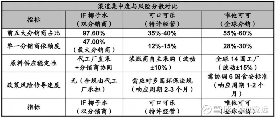 渠道集中度与风险分散对比。IF通过双分销商的地域协同(线上+线下)和功能互补(物流+营销),将单一渠道风险降低至行业平均的1/3。
