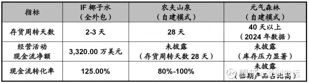 四是优化现金流与库存,存货周转天数仅2-3天,远低于农夫山泉的28天,现金流转化率达125.00%。