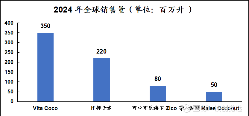 在销售量方面,Vita Coco和if椰子水同样在全球市场中占据较大的份额。Vita Coco在欧美等成熟市场的销售量领先,而if椰子水在中国及部分亚洲市场的销售量表现突出。两者的销售量均大幅高于其他品牌,进一步强化了全球椰子水市场的双寡头竞争格局。