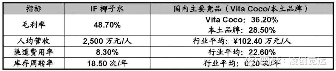 从成本结构看,IF依托泰国本土原料供应与海运物流,总生产成本仅3.05元/升,较行业平均的5.80元/升低47.41%,其中椰青原料成本1.20元/个(自有椰园供应),显著低于Vita Coco的进口椰青成本2.05元/个(差距41.46%),物流成本0.35元/瓶(中泰海运)仅为Vita Coco跨境空运成本(1.20元/瓶)的29.17%。
