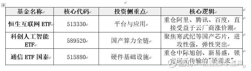 • 稳健派:上游算力硬件(光模块、IDC),业绩兑现最快,确定性最高