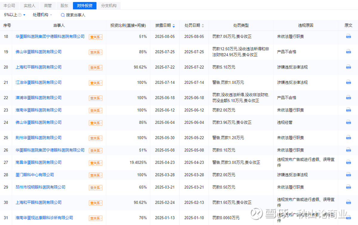企业预警通显示,华厦眼科旗下医院的违规行为,远不止文中所提到的这些,仅2025年就有30项左右。