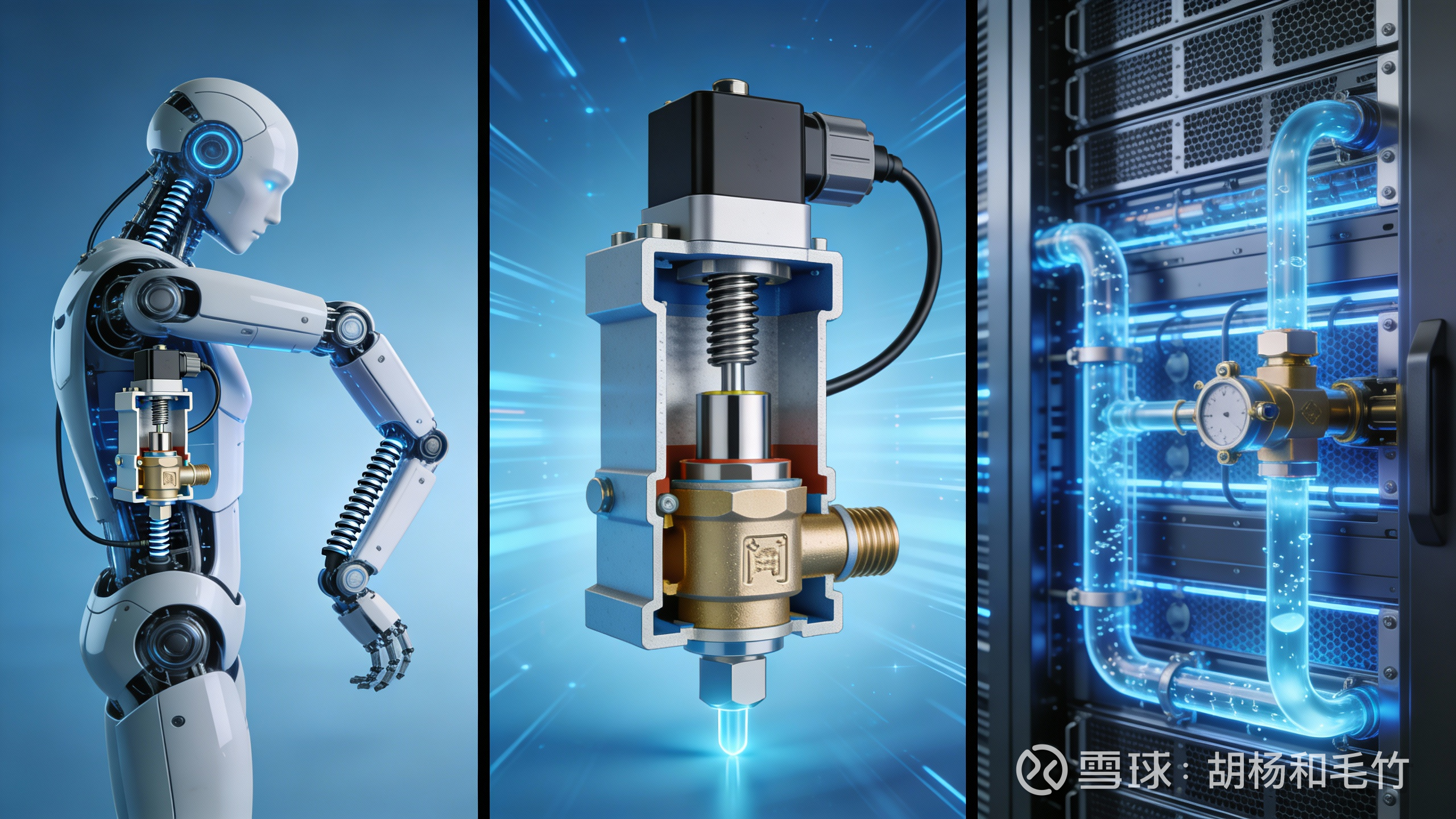 我们先来聊聊这门生意的本质,用一个通俗的类比,三花智控其实就是一个拥有顶级刀工的厨师。以前他在路边摊切土豆丝,这叫家电业务;后来他去五星级酒店切生鱼片,这叫新能源汽车业务;现在有人请他去做两道顶级大菜:一道是需要极致精准摆盘的分子料理,这叫机器人业务,另一道是需要精确控制火候的佛跳墙,这叫AIDC液冷业务。虽然切的东西越来越贵,场景越来越高级,但核心手艺没变,都是对物理运动和流体的极致控制,在工业上,这叫技术同源。无论是空调里的阀门,还是机器人胳膊里的丝杠,亦或是服务器里的液冷泵,本质上都是用电机驱动精密零件进行直线运动或流体调节。因为手艺是现成的,所以三花不需要像新玩家那样从头练级,这就是它能跨界降维打击的底气。