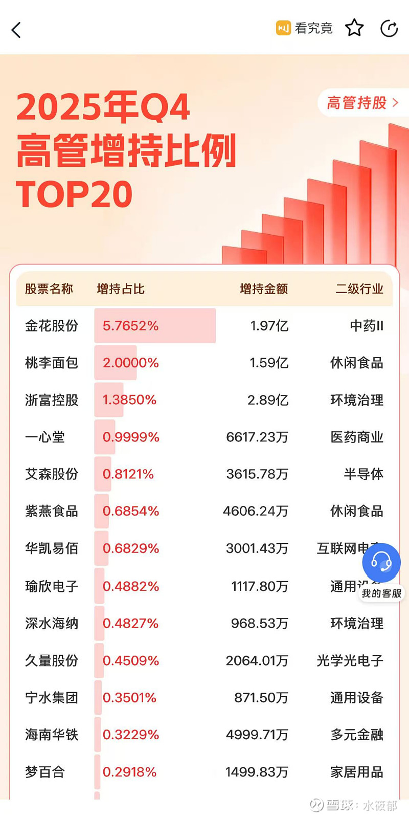 25年Q4高管增持比例排行,华凯这力度真可以