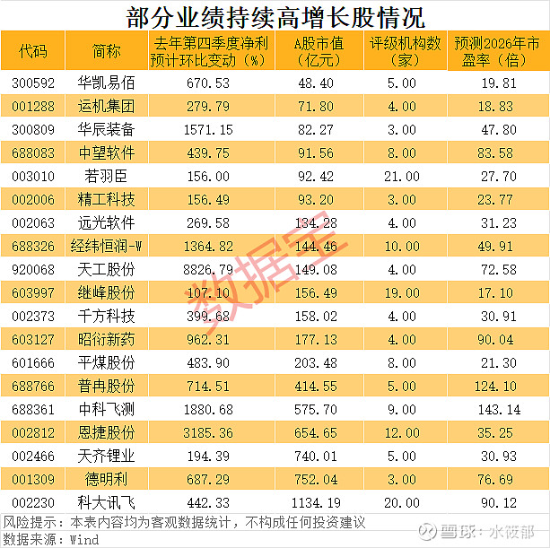 数据宝统计出A股19只25年第四季度净利环比增长超100%,且机构一致预测今年、明年净利增速均超30%的个股,华凯占其一。
