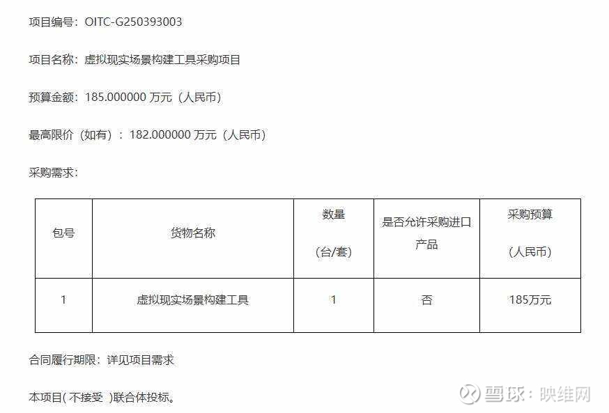 中国科学院空间应用工程与技术中心发布公告,计划以185万元采购虚拟现实场景构建工具,项目编号为OITC-G250393003,最高限价182万元。本项目不接受联合体投标,投标人需在中国境内依法注册并具备良好信誉和履约能力,同时不得存在失信或违法记录。招标文件售价600元,可通过东方招标平台获取,提交投标文件截止时间为2025年12月16日09点30分,开标地点为北京海淀区邓庄南路9号该中心第七会议室。公告还强调了政府采购政策的落实,包括支持中小企业、监狱企业、残疾人就业及节能环保产品采购。