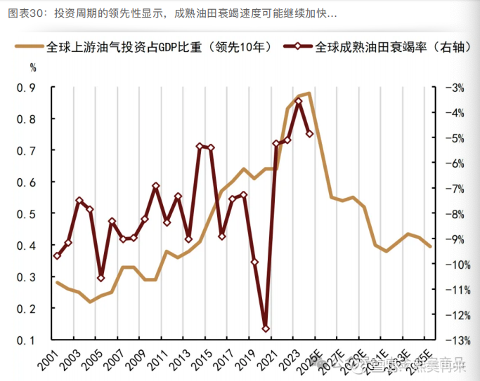 第三大推手则是”产量基数的乘数效应”. 与 2010 年相比,当前全球石油产量高出 20%、天然气产量高出 30%,这意味着即便衰减率不变,每年产量损失的”绝对值”也会大幅增加。