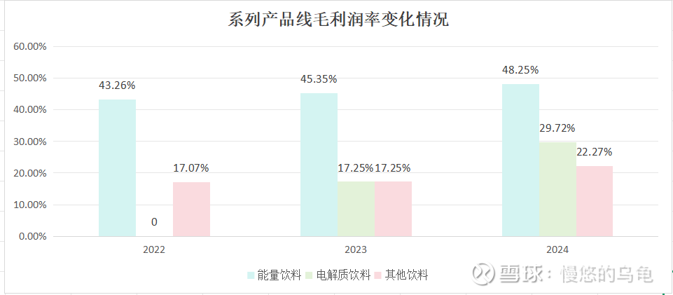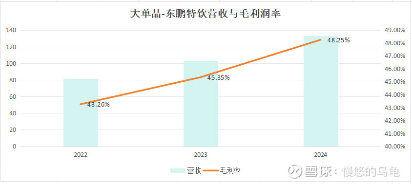 从上图可看到,东鹏特饮随着营收快速增长,其毛利率从2022年到2024年提升了5%百分点。因此,净利率提升最终也归于核心产品的营收增长因子。