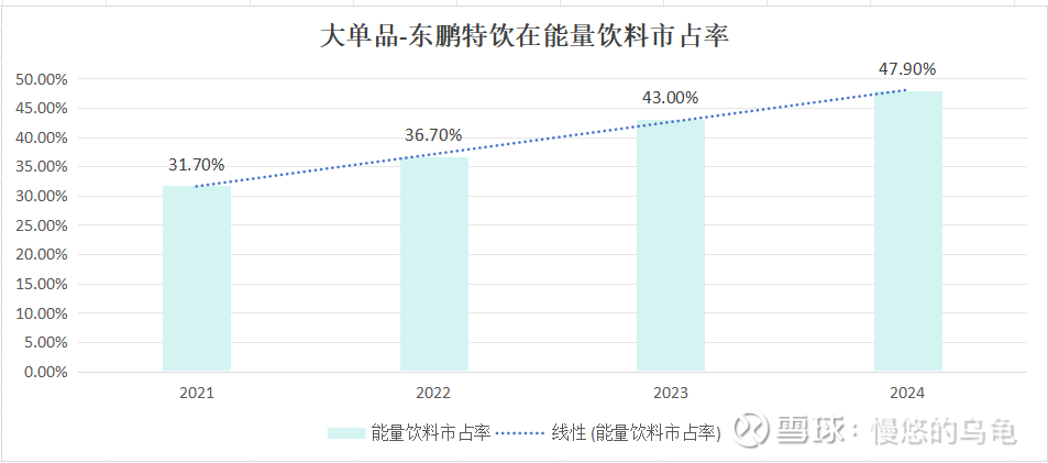 大单品东鹏特饮,从目前市占率趋势(47.9%—>60%以上),3年内年增长速度预计可保持20%增长率。