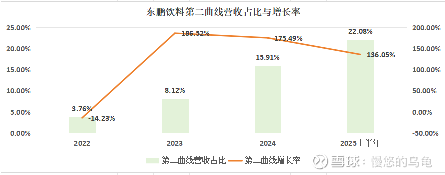从上表可看到:截止2025年年中年报,非能量饮料的营收占比从2022年的3.76%,提升到2025年22%。特别是电解质饮料近两年保持200%以上的增长。东鹏饮料第二增长曲线预计是未来保持营收增长的重要推动力。