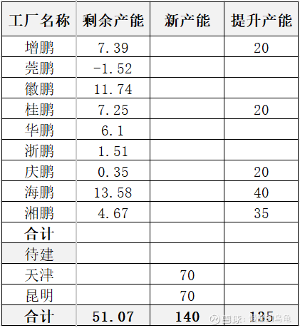 基于已建工厂设计与实际产能的剩余产能、在建产能提升、新建工厂规划,其未来3年新增产能评估如下表:
