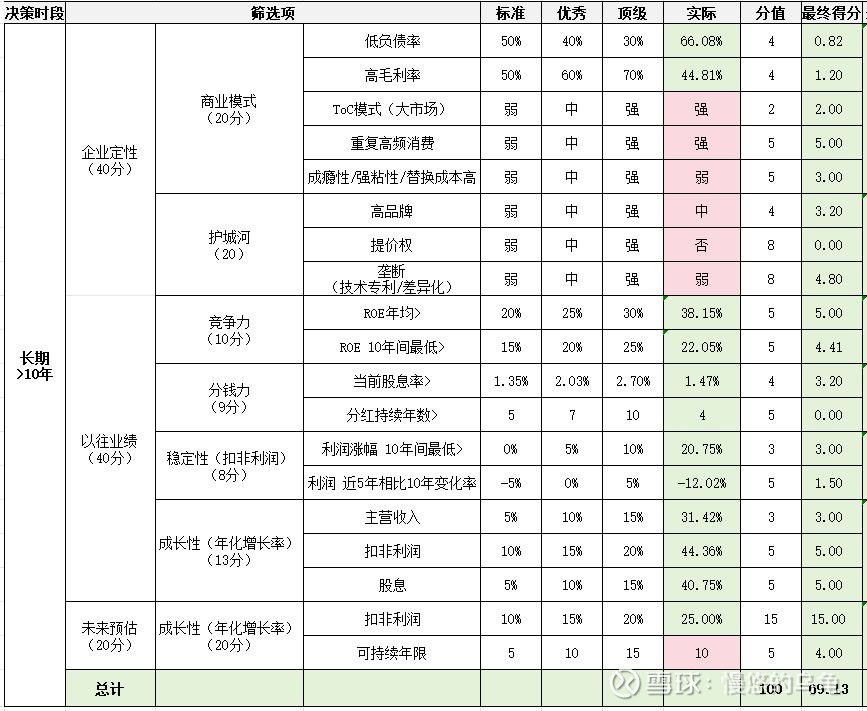 (6)未来收益:基于估值回归、长期确定性及增长率,评估出未来3-10年预期年化收益率。