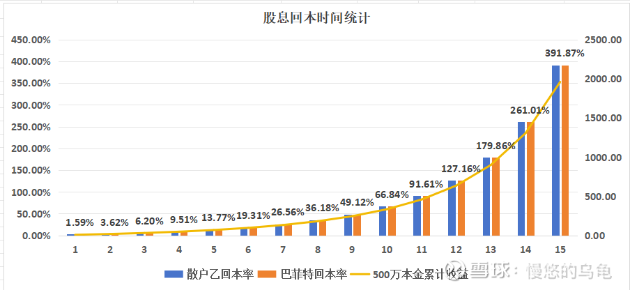 评估结果:巴菲特、散户乙模型股息回本时间均是12年。