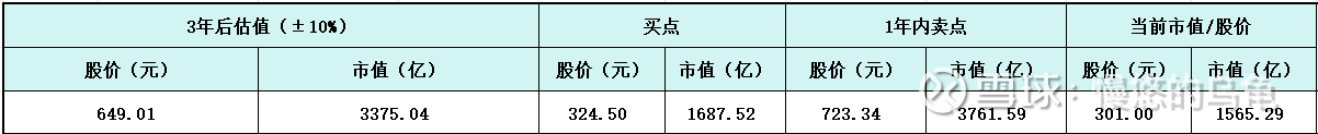 三年后股价/市值:649.01/股,3375亿市值