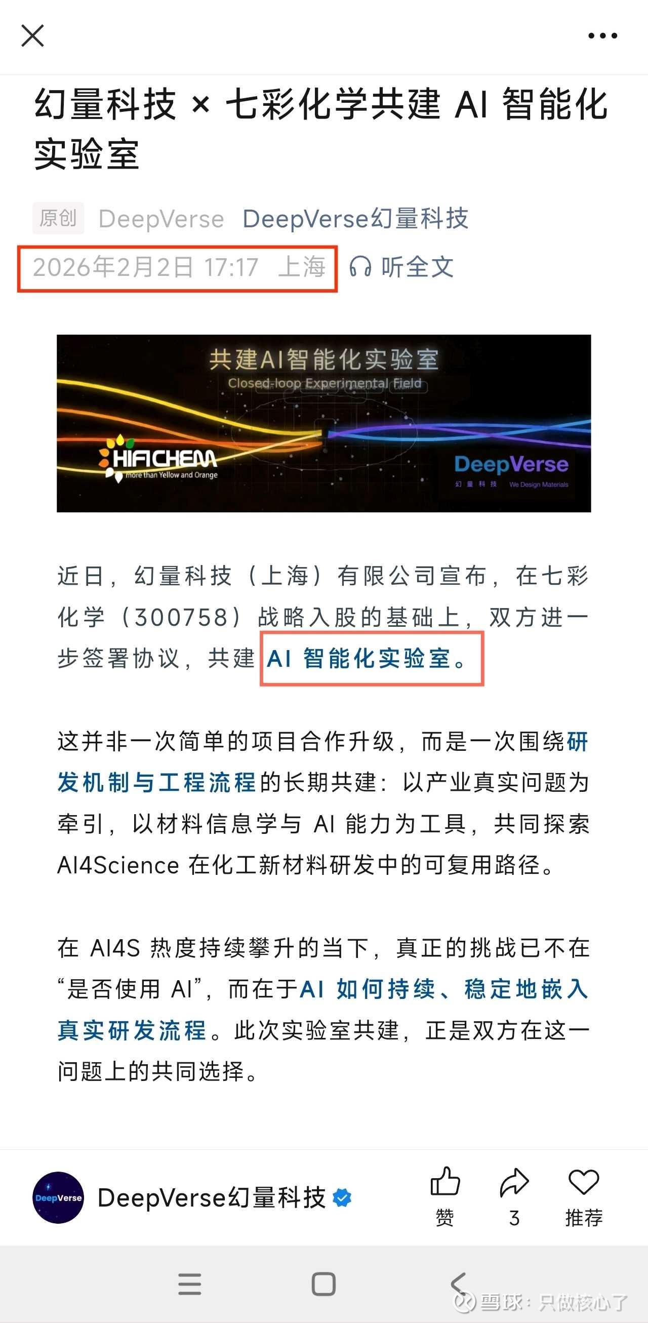 七彩化学,这个AI4S的头部厂商,是剑桥大学物理学,还是物理学,志特新材合作的是中国科学院大学物理学院。AI4S就是颠覆性的科研创新,小弟10个点以上,龙头大多是可以涨停的。$志特新材(SZ300986)$ $七彩化学(SZ300758)$