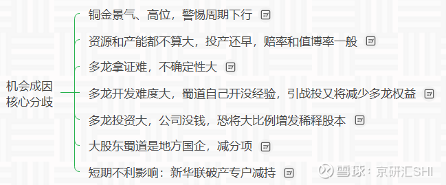 宏达股份的核心认知差,总结如下,欢迎大家补充指正。1,铜金景气、高位,警惕周期下行2,资源和产能都不算大,投产还早,赔率和值博率一般3,多龙拿证难,不确定性大4,多龙开发难度大,蜀道自己开没经验,引战投又将减少多龙权益5,多龙投资大,公司没钱,恐将大比例增发稀释股本6,大股东蜀道是地方国企,减分项7,短期不利影响:新华联破产专户减持$宏达股份(SH600331)$查看图片