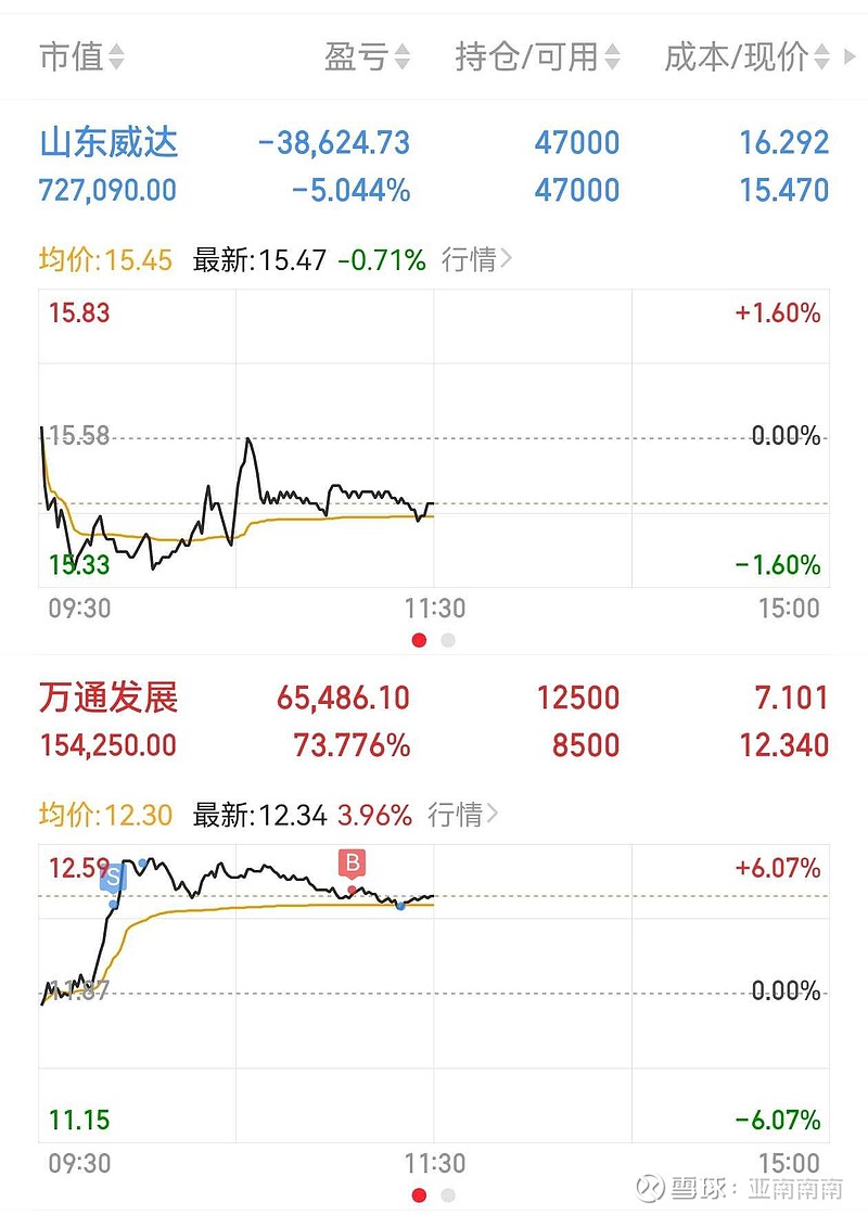 2️⃣$万通发展(SH600246)$ 今天继续走高,昨天T入资金今早分别在12.3和12.5T出,到11点左右观察到买盘力度不足,进一步卖出节前加进去的一部分筹码,结果操作失误,“卖出”点成了“买入”