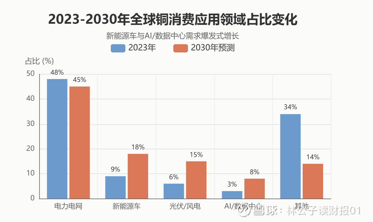 ✅ 绿色转型:新能源车、光伏、AI数据中心用铜强度远超传统领域;