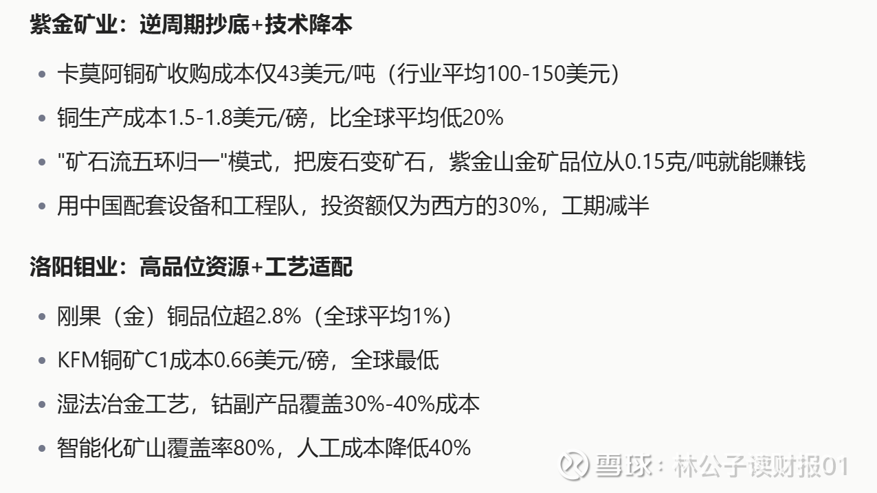 紫金矿业卡莫阿矿成本仅**$0.66/磅**,全球最具竞争力。