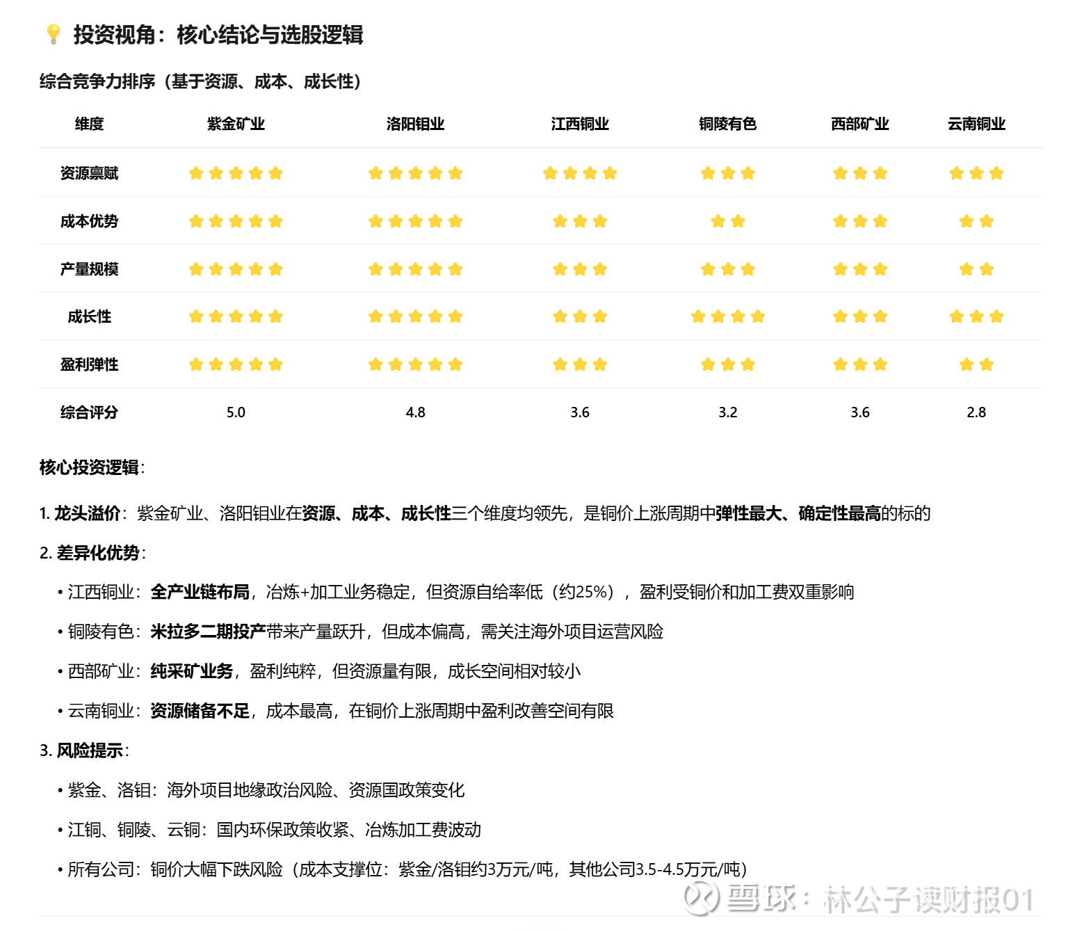 首选:紫金矿业、Freeport、洛阳钼业(资源+低成本)$洛阳钼业(SH603993)$