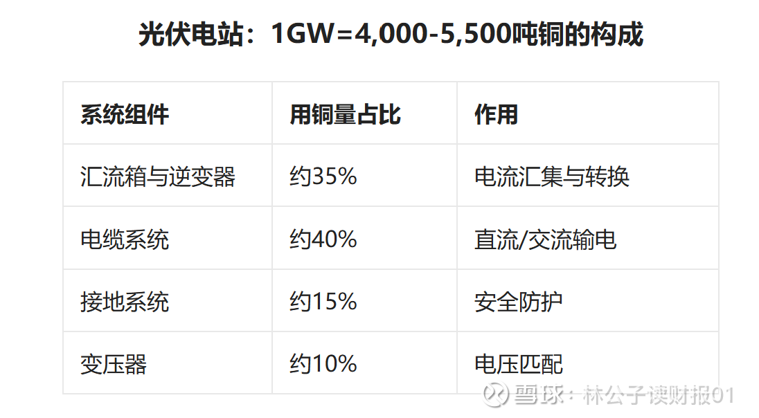 关键洞察:光伏电站是"分布式+集中式"的混合体,每块组件到逆变器、每个逆变器到升压站,都需要大量铜缆连接。光伏越是分散,铜的需求越是刚性。