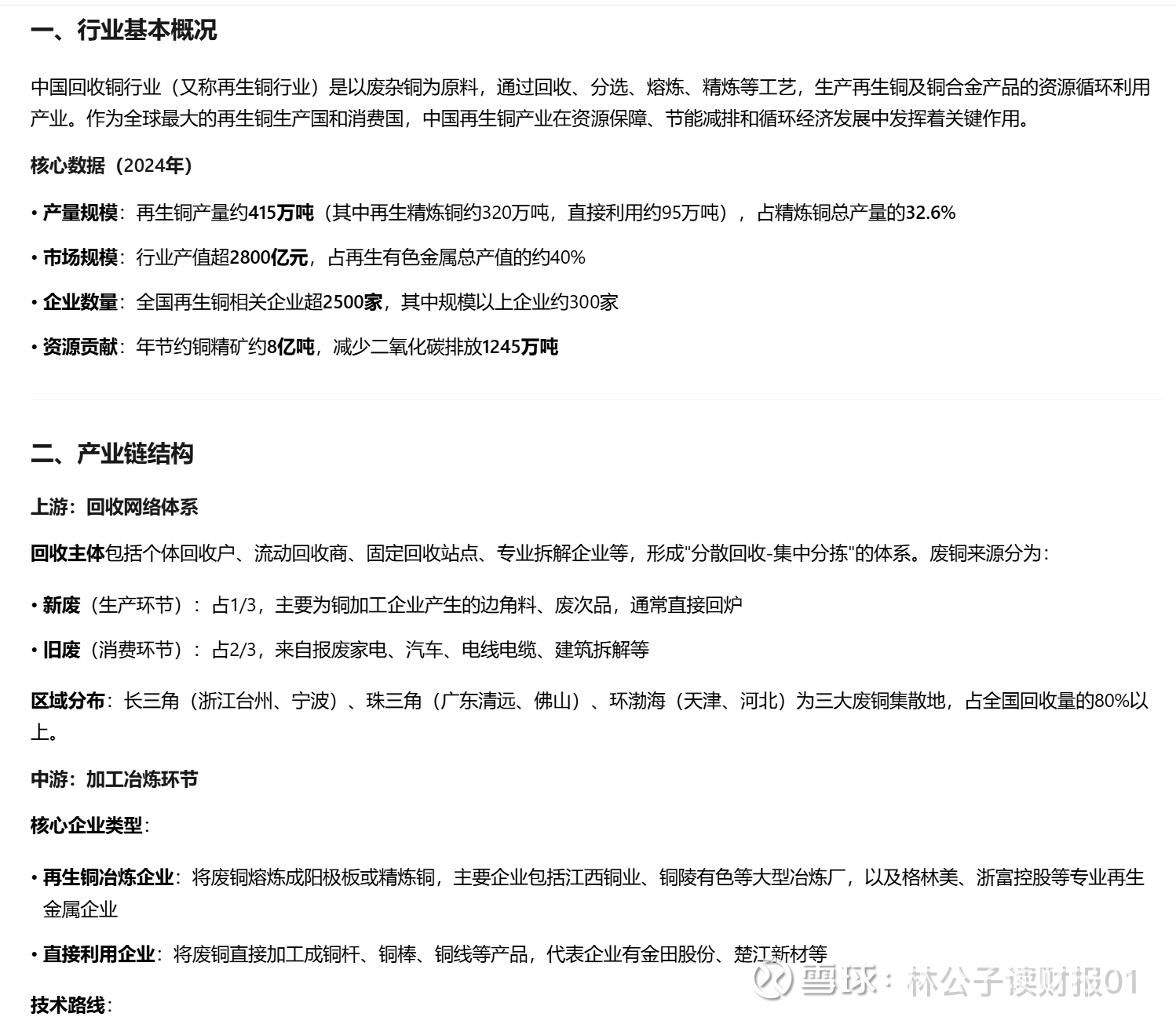 完善废铜回收体系;2025年国内再生铜产量预计达450万吨,市场规模超2000亿元。格林美是国内最大的废铜回收企业,占据行业领先地位。
