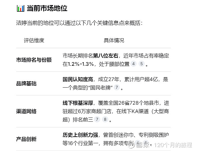 但是洁婷是一张拥有良好底牌的“老牌”,其潜力在被收购后已被初步激活。但要想在激烈的竞争中实现真正的份额增长,关键在于能否将豪悦的制造研发优势与洁婷自身的品牌和渠道资产成功融合,并打赢品牌年轻化和全渠道增长这两场硬仗,后续观察吧,对于豪悦护理这个代工的工厂,对于推广新品牌,激活老国货的路子的能力,不敢妄下结论。