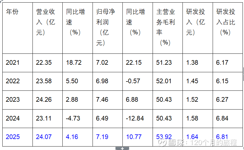 年报数据显示,公司全年实现营业收入24.07亿元,同比增长4.16%;归属于上市公司股东的净利润7.19亿元,同比增长10.77%,业绩增速较上年实现显著改善;经营活动产生的现金流量净额9.62亿元,同比增长9.62%,现金流运行稳健,为企业持续经营与战略布局提供了坚实的资金保障。从盈利质量来看,公司主营业务毛利率达53.92%,同比提升3.49个百分点,核心盈利水平持续优化,这一成果的取得,得益于公司在技术研发、生产效率提升及成本管控方面的持续投入与高效落地。