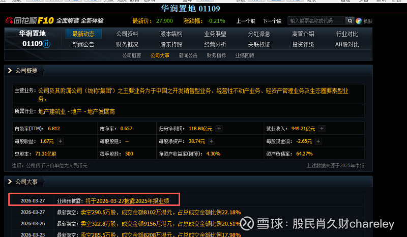 $华润置地(01109)$