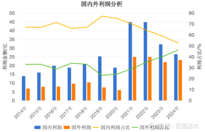 研发费用(蓝色折线):2017-2024年:研发费用开始单独列支并持续跃升,从2017年0.2%,增长至2024年的1.5%。表明公司将技术创新和研发提升持续。考虑到营收总额的巨大增长,叠加研发费率增长,研发费用的绝对金额是在持续增加的。