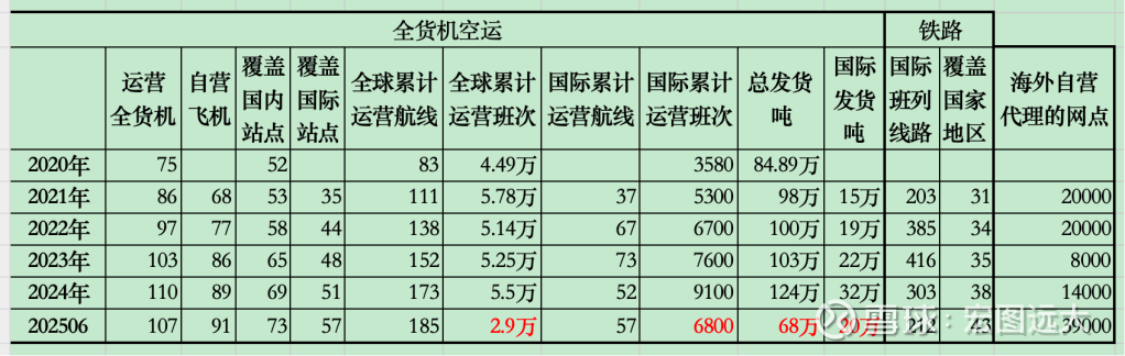 国家地区覆盖达到100个左右的时候,不再增长,甚至出现回调,但是2025年海外自营网点出现爆发式增长,说明顺丰认为广泛的网络覆盖已不是当前首要目标。资源正被投入到增加现有核心市场的网点密度、提升航班频率和货运量上。