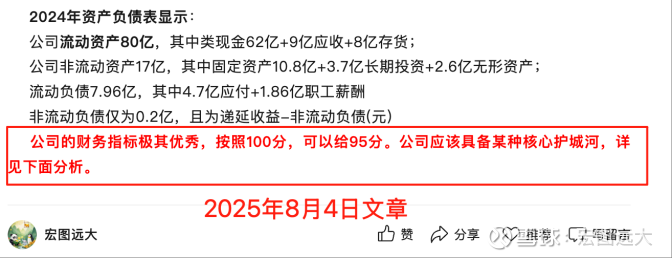 首先,分析公司时,先看一下财报,财报合格,财报就是用来排除垃圾企业的,再考虑是否深入分析,因为深入分析很费时间。我对公司的财务分析后,得出结论:公司的财务很优秀,公司无财务风险,轻资产,净利率很高,历史表现都很好,具体结论如上图所示。