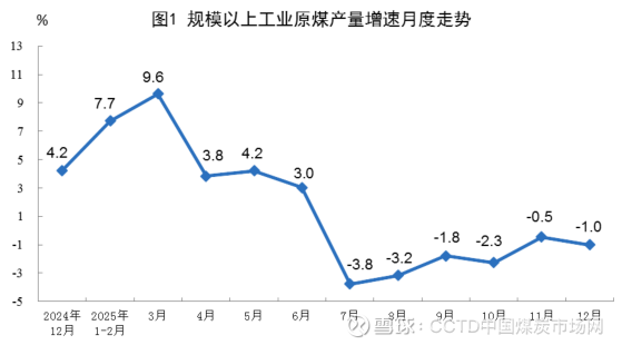原煤产量稳中略降。12月份,规上工业原煤产量4.4亿吨,同比下降1.0%;日均产量1410万吨。