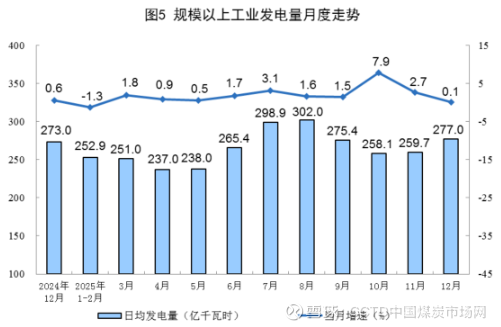 12月份,规模以上工业(以下简称规上工业)原煤生产保持稳定,电力生产保持增长。