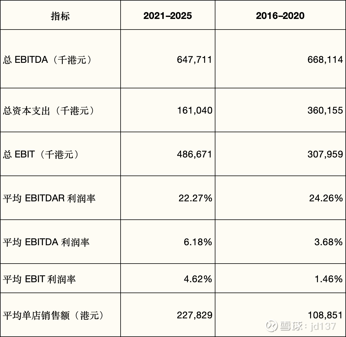 值得强调的是,随着经济走弱、租金重置下调,EBITDA 利润率反而有所提升,在本案例中这反而帮助了零售商。 自 2019 年以来,核心地段街铺租金整体下跌约 30%–50%,缓解了租金压力并抬升了 EBITDA 利润率。除异常疲弱的 2025 年外,2021–2024 年期间公司的 EBITDAR 基本维持在 20% 或以上,尽管疫情对业务造成了干扰。总体来看,过去五年的盈利能力并未因为门店减少而弱于疫情前水平。相反,门店减少、产品组合升级叠加资本支出大幅缩减,使得 2021–2025 年的平均 EBIT 利润率显著高于 2016–2020 年。
