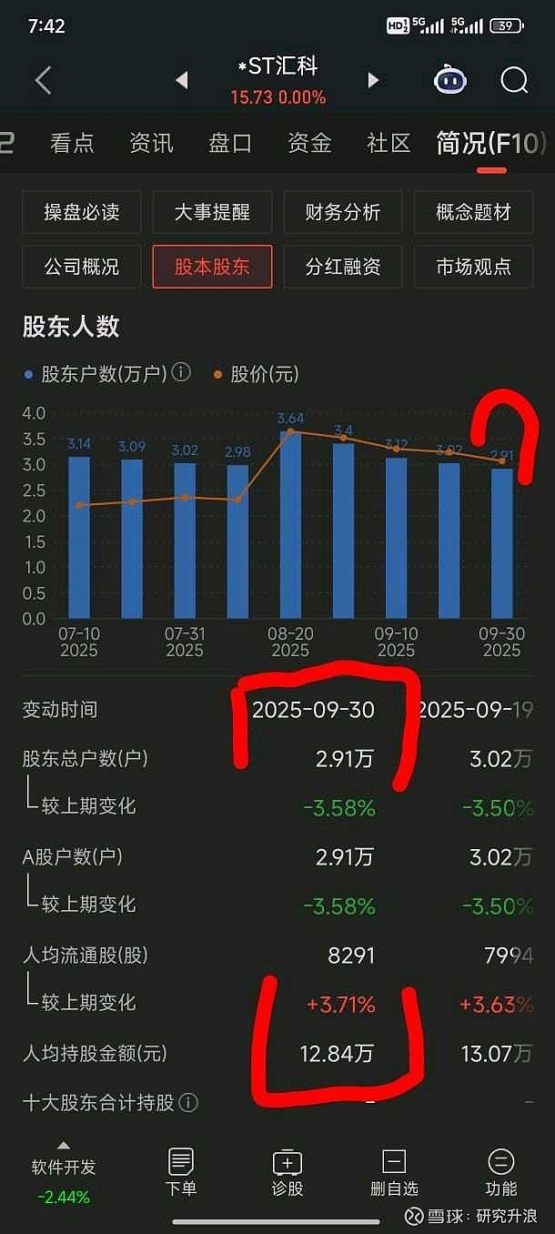 人均持股数量持续上升,股东人数创st以来新低,筹码持续集中,股价继续低位徘徊,专有术语怎么说来?是不是底部吸筹