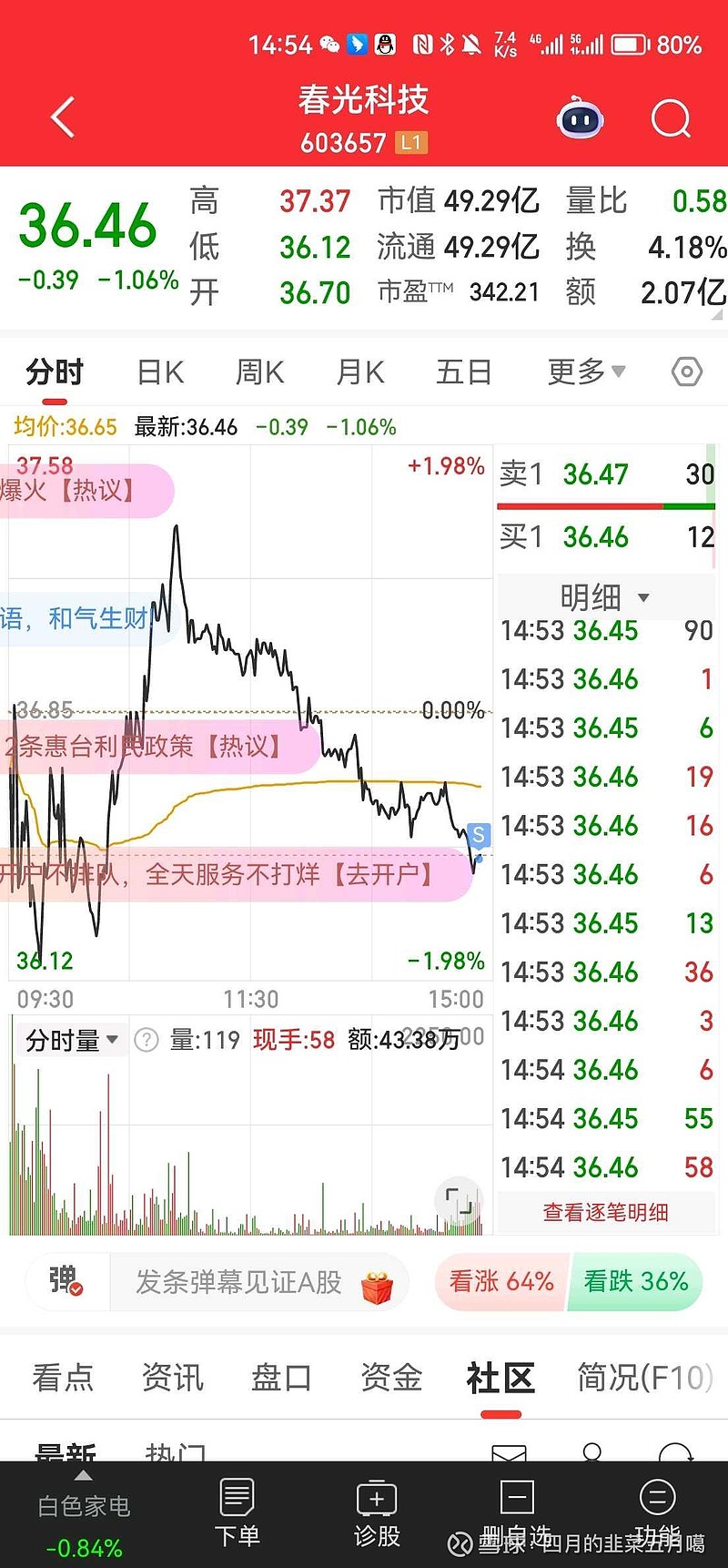 $春光科技(SH603657)$