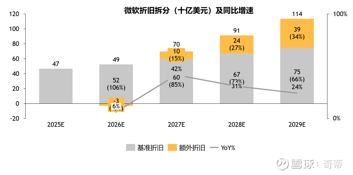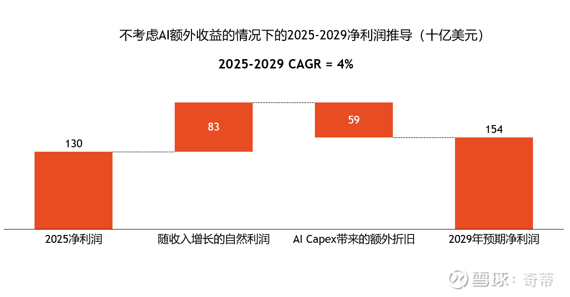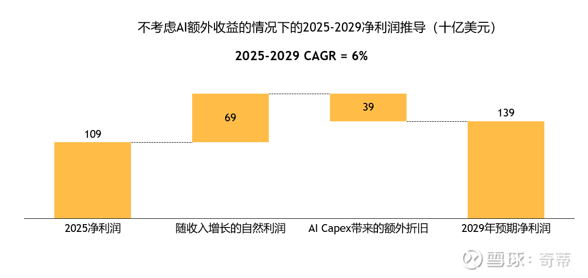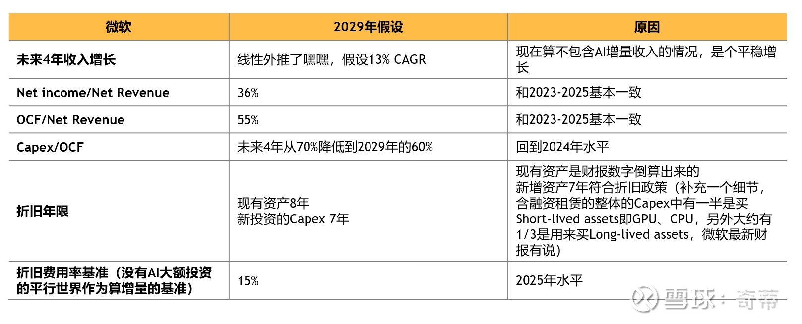 意味着什么呢?翻译翻译就是如果AI没有增量收益,而只考虑折旧,微软未来4年净利润的CAGR只有6%