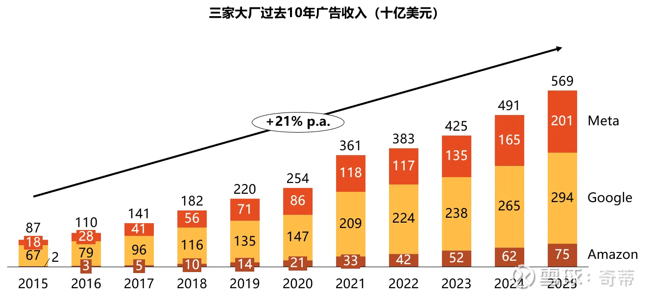 3家大厂现在每年广告收入5700亿,过去10年CAGR 21%