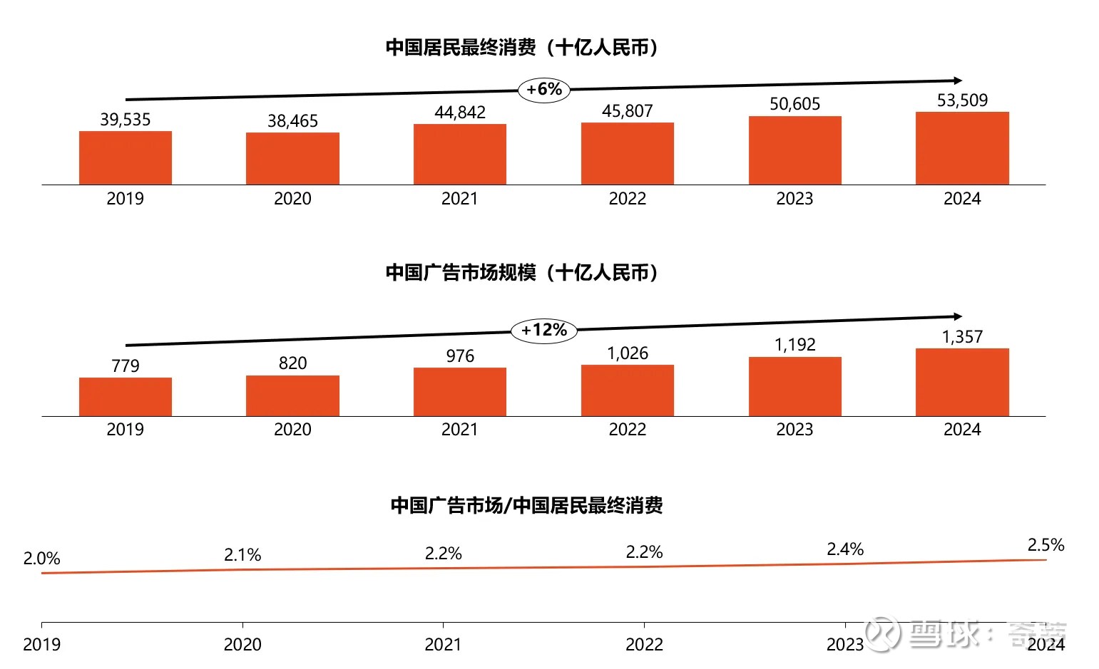 数据来源:居民最终消费数据来自于世界银行(但世界银行这个数据只有到2022年的,缺少了2年数据),广告市场规模数据来自花旗