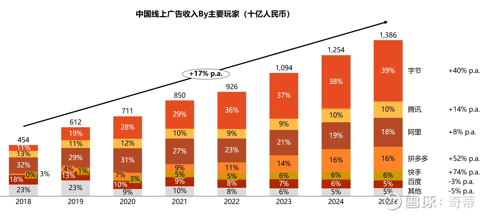 三、中国的线上广告格局:主要是拼多多和字节在涨份额,腾讯维持份额