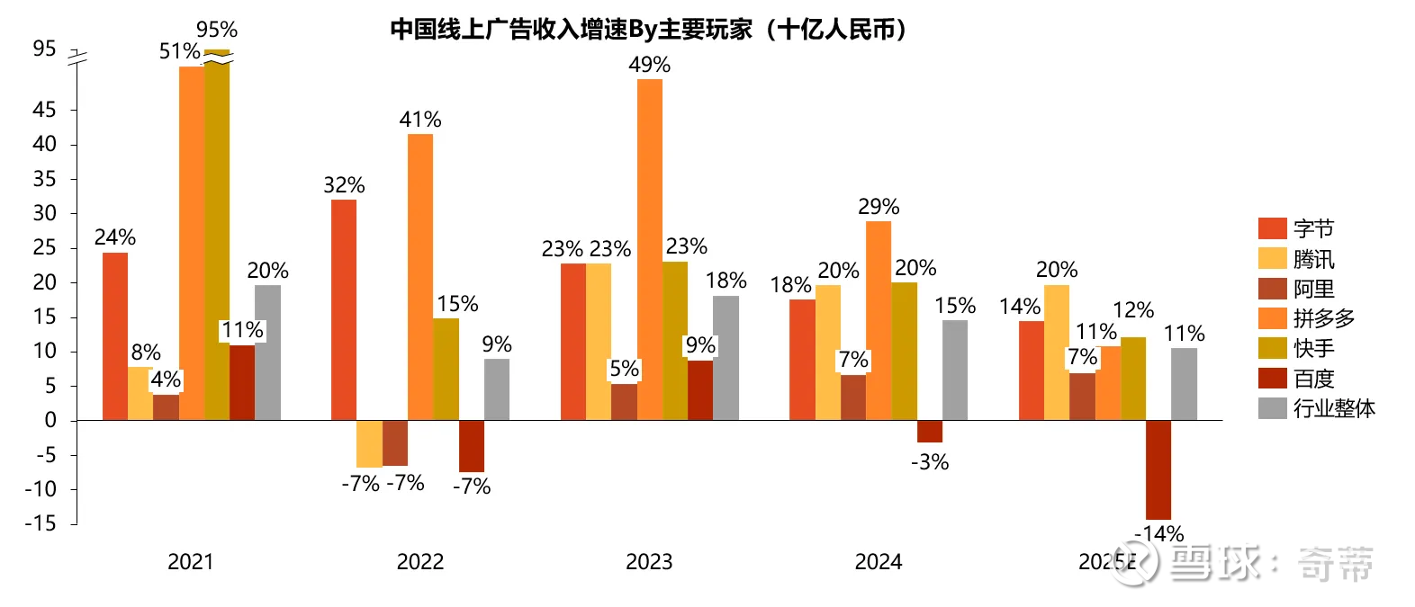 然后来各玩家的增速,能看出到2025年,集体降速是明显的,比如字节广告增速也只有14%(用的是券商测算,所以欢迎指正)