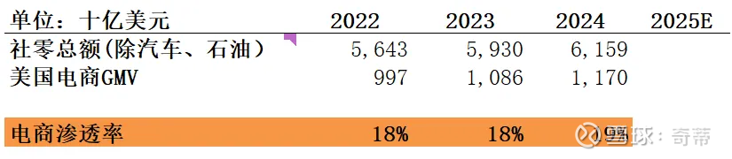 美国电商渗透率19%左右,且仍在增长