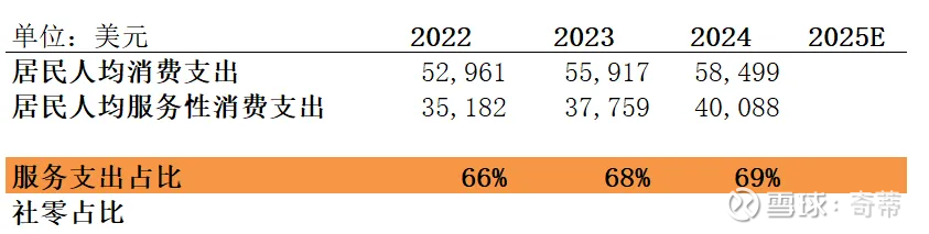 而美国居民服务型支出占比是69%