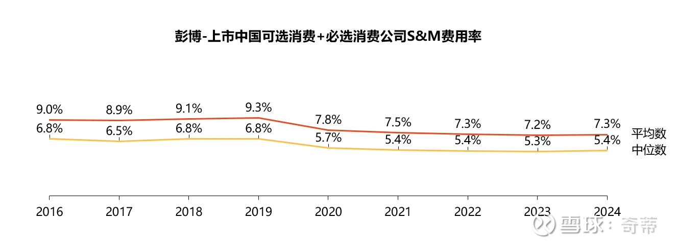 数据来源:彭博共1200多个左右中国可选+消费必选公司(S&M费用最高的Top10是京东、Yum China、美的、海尔、安踏、蒙牛、伊利、比亚迪、上汽、复星,全部公司的S&M费用中位数是1亿人民币左右,可以有个概念)