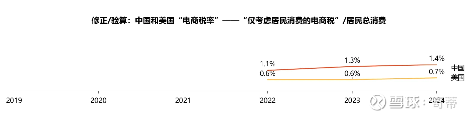 所以你会发现,在新的算法下美国的“电商税率”和之前的算法几乎没有差别,但中国的下降了1/3,核心原因要么就是中国居民购买力太弱而企业购买力太强,要么就是统计数据有误差(但社零和居民消费都是统计局统计的,尽管一个从卖家角度一个从买家角度),但无论什么口径,中国的“电商税率”都远高于美国!为了可比,我们之后的文章依然使用一开始的计算值