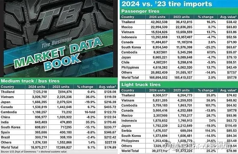 以2024年的乘用胎出口第一的泰国出口美国的数据为例,平均价格是38美元,而墨西哥是第二位,平均价格是83美元,价差为45美元,都增加25%关税的情况下价差达到56美元。
