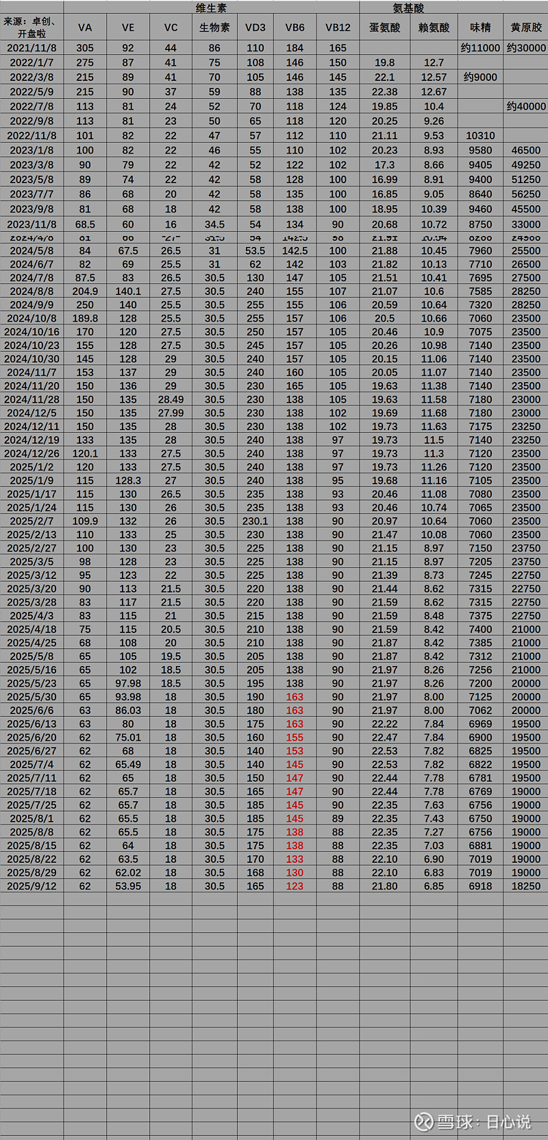 $梅花生物(SH600873)$ $新和成(SZ002001)$ 本周维生素、氨基酸、味精价格更新。